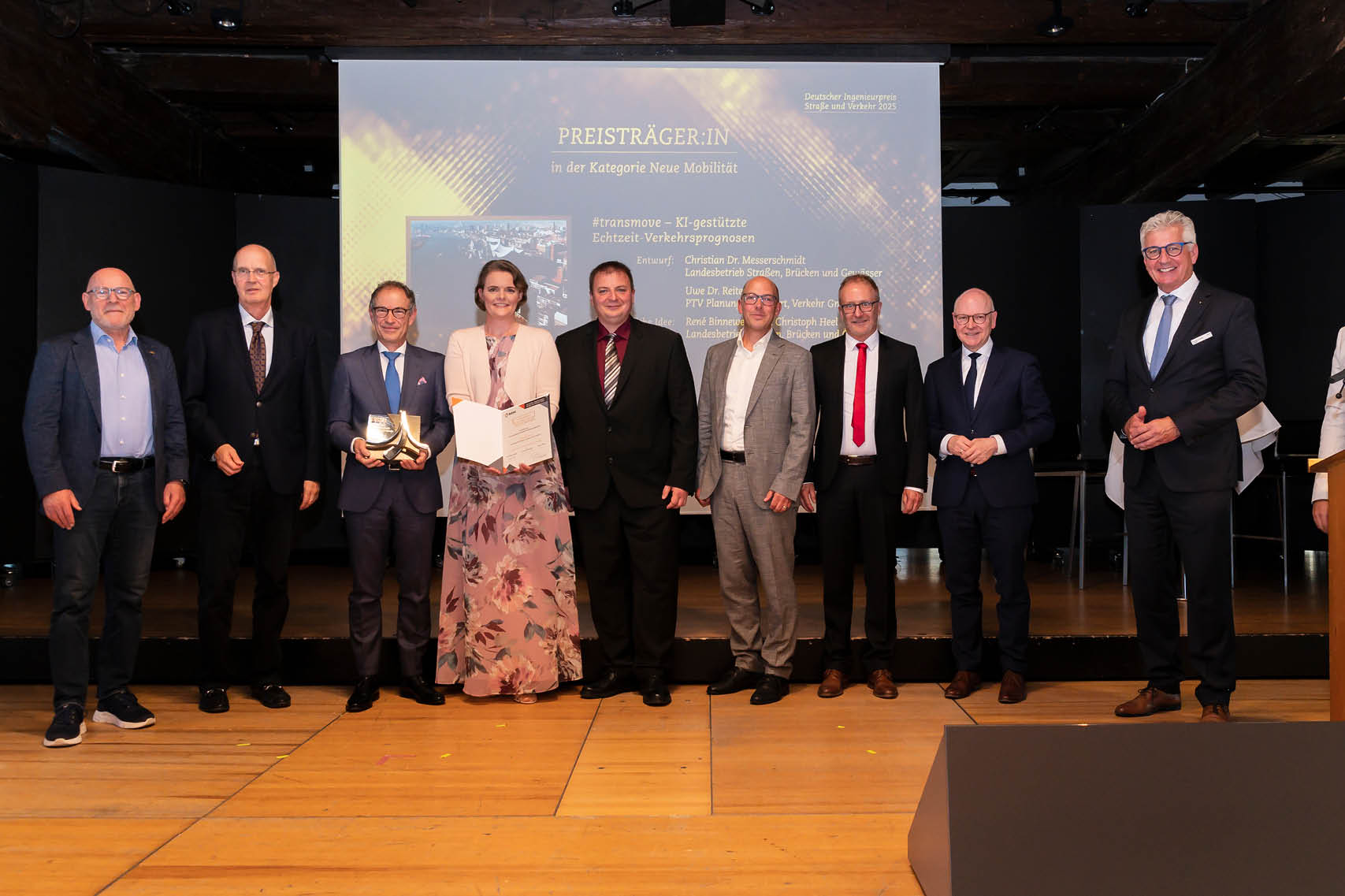 Drei Projekte wurden mit dem Deutschen Ingenieurpreis für Straße und Verkehr ausgezeichnet. Den Preis vergibt die Bundesvereinigung für Straßenbau- und Verkehrsingenieure e.V. (BSVI) alle zwei Jahre. Aus 85 Einreichungen wurde je ein Siegerprojekt in den Kategorien "Baukultur", "Innovation und Digitalisierung" sowie "Neue Mobilität" vergeben. Die Auszeichnungen überreichten BSVI-Präsident Bernhard Knoop, Gerhard Rühmkorf vom Bundesministerium für Verkehr und der Verkehrsminister von Baden-Württemberg, Winfried Hermann, bei einer feierlichen Preisverleihung am 19. September 2025 in Konstanz.