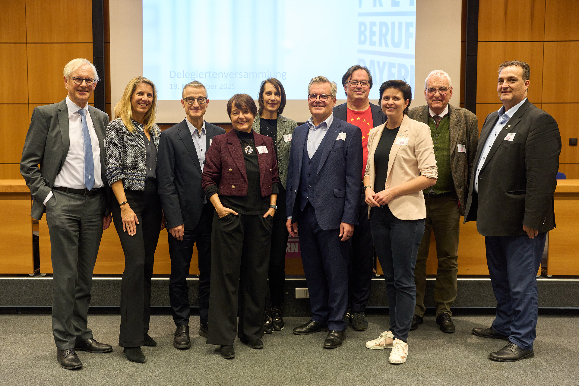 Bei der der Delegiertenversammlung des Verbands Freier Berufe in Bayern e.V. (VFB) am 19. November 2025 in München wurde Dr. Thomas Kuhn einstimmig im Amt des Präsidenten bestätigt. Dipl.-Ing.(FH) Alexander Lyssoudis, Vorstandsmitglied der Bayerischen Ingenieurekammer-Bau, wurde wieder zu einem der Vizepräsidenten gewählt und vertritt die Ingenieurinnen und Ingenieure im Präsidium des VFB. Neu im zehnköpfigen Präsidium des VFB ist die Architektin Alexandra Heese.