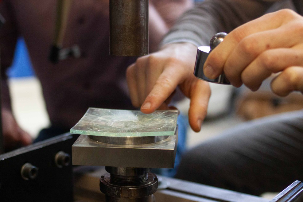 Beim anschließenden Biegeversuch belastete Wernli die Proben – darunter sowohl neue als auch gebrauchte Flachgläser, bis sie zerbrachen. Die Kraft, die dabei aufgewendet wurde, ist ein Maß für die Festigkeit.