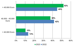 Entwicklung der Einstiegsgehälter – Vergleich 2023 - 2022 (Bachelor- und Masterabsolventen)