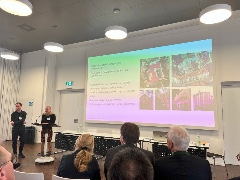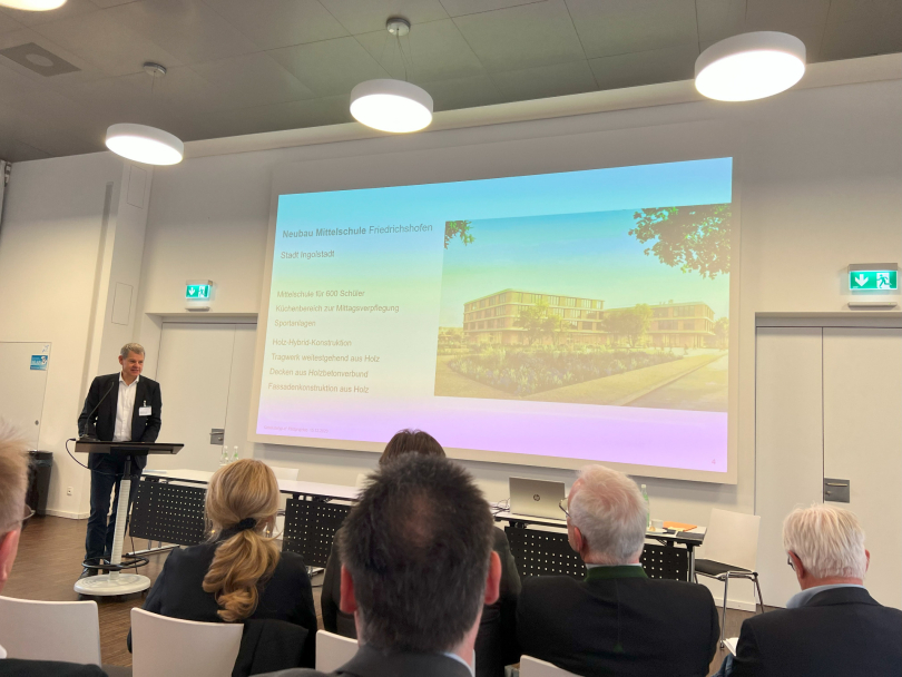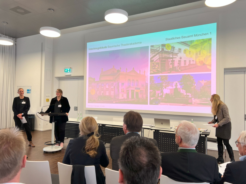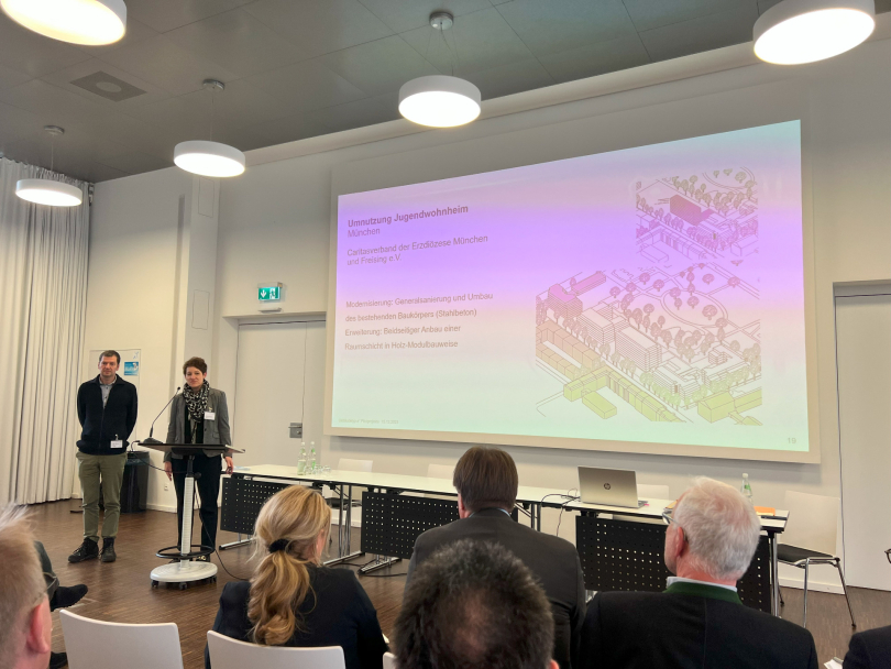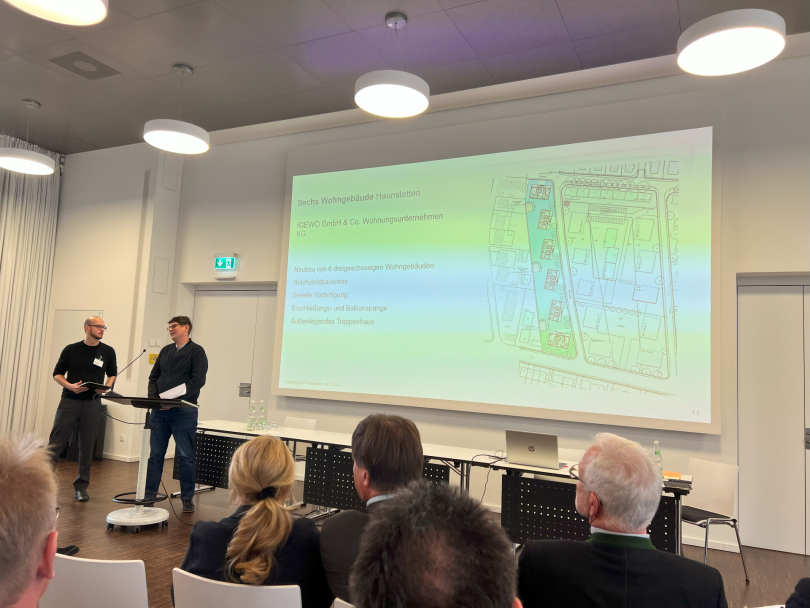 Nach einem Grußwort von Dr. Thomas Gruber, Amtschef im Bayerischen Staatsministerium für Wohnen, Bau und Verkehr, und Impulsvorträgen von Prof. Lydia Haack, Präsidentin der Bayerischen Architektenkammer und Prof. Dr. Norbert Gebbeken, Präsident der Bayerischen Ingenieurekammer-Bau, wurden die Projekte vorgestellt. Insgesamt haben sich 19 Bauherren aus allen Ecken Bayerns mit Pilotprojekten gemeldet, darunter 15 Wohnbauprojekte, drei kommunale Schulbauprojekte und ein Verwaltungsgebäude.