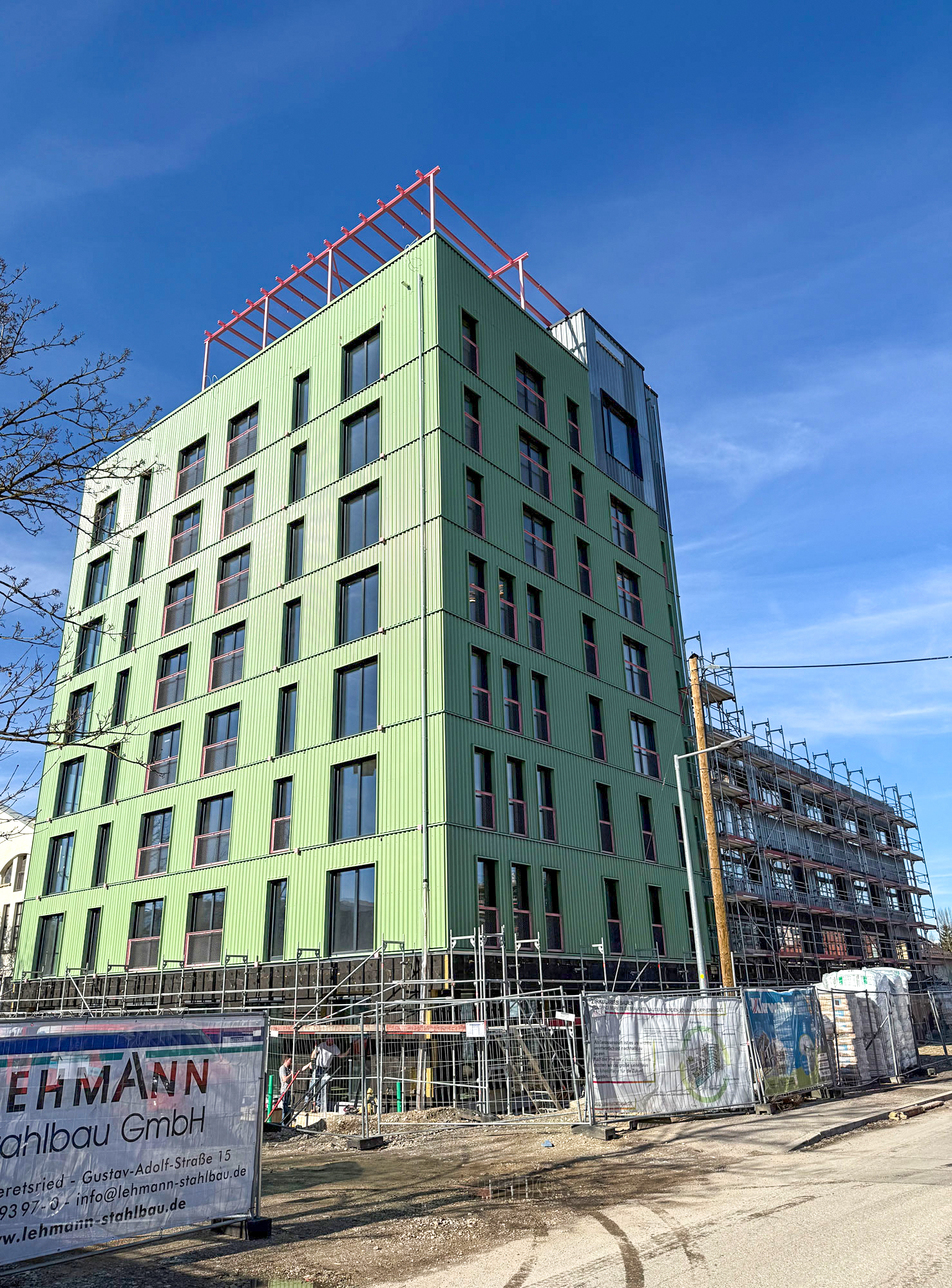 Im Münchner Kreativquartier entsteht Wegweisendes: Ein neues grünes Haus ist in den letzten Wochen zum neuen Hochpunkt der Nachbarschaft gewachsen und bringt unterschiedliche Nutzungen zusammen. Die Genossenschaft „Das große kleine Haus eG“ hatte am 26. Februar 2026 zum Richtfest eingeladen - der Rohbau ist bereits fertig. Wegweisend ist bei diesem „großen kleinen Haus“ aber insbesondere der bauliche Ansatz - mit dem innovativen Gebäudetyp-e wird hier einfach und innovativ gebaut.